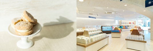 写真左:限定商品「ハニーミルクケーキ ミオレ」、写真右:ショップコーナー