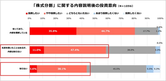 ・株式分割のことを知っている人は約6割。知らなかった人でも内容を理解した後は約6割が魅力を感じる結果に。