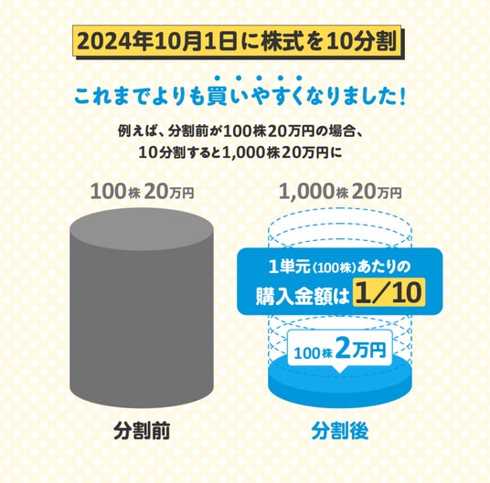 これは若い世代にとってなかなか手が出る金額ではありませんが、10分割後は100株を購入するために必要な資金が10分の1となり、例えば2025年1月後半の株価では、2万円ほどでソフトバンクの株式を購入することができるようになりました。