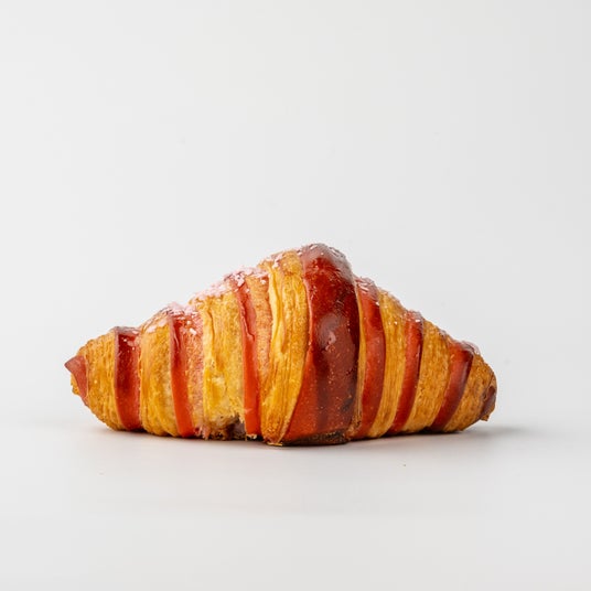 ベリーを練り込んだ生地に、3種類のベリークリームが入っているベリー尽くしのクロワッサン。