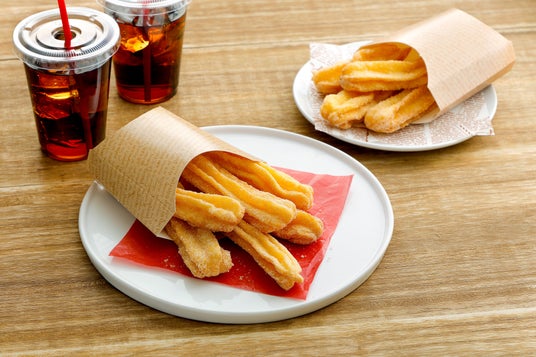 遊園地やテーマパークなど食べ歩きアイテムとしても人気。米粉で作ることで外はカリカリ、中はもちもち食感に仕上がるのが特徴。