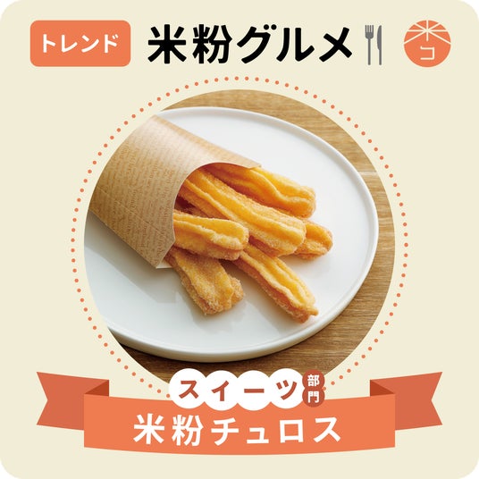 - 2025年 トレンド米粉グルメ - パン部門:米粉ベーグル スイーツ部門:米粉チュロス ネクストブレイク部門:ピンサ