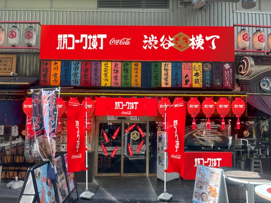 コカ・コーラシステムは、2025年2月17日(月)から3月2日(日)まで"渋谷横丁"とコラボレーションし、店内外を「コカ・コーラ」一色に染める「瓶コーク横丁」を期間限定で開催します。店内外には、提灯や暖簾などの装飾が「コカ・コーラ」一色に染まり、テーブルの上にも写真を撮りたくなるフォトスポットなどが設営されます。開催と同時に、瓶に入った「コカ・コーラ」を「瓶コーク」と称し、渋谷横丁の全店舗にて販売を開始します。"令和のカンパイを変える"をモットーに、全ての料飲店にて「瓶コーク」でカンパイができる未来を目指し、渋谷横丁を皮切りに全国へ広めていきます。