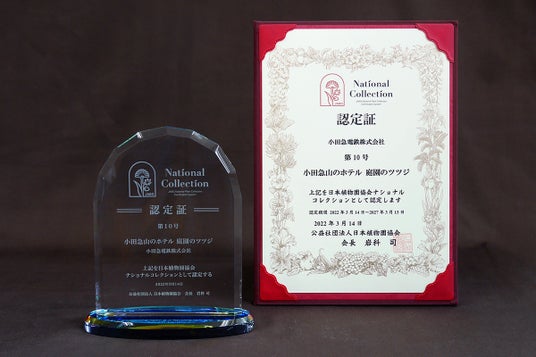 「小田急山のホテル 庭園のツツジ」は、江戸時代に作出された、他ではほとんど見られない30の古品種を含む84種類約3,000株のツツジがあり、周囲の景観とともに次世代に残すべき価値あるコレクションとして、2022年に神奈川県内で初めて「日本植物園協会ナショナルコレクション第10号」に認定されました。そして2023年にはツツジに続いて「小田急山のホテル 庭園のシャクナゲ」が「日本植物園協会ナショナルコレクション第15号」に認定されました。シャクナゲ園には、日本へ最初に導入された西洋シャクナゲ、ゴーマー・ウォータラーの元株をはじめとして、江戸時代末期から明治時代に海外で作出された貴重な品種9種類や、環境省の絶滅危惧種に選定されている日本原産の野生種キョウマルシャクナゲやホソバシャクナゲなど、42種類約300株が保存されています。明治から大正時代に造られた日本で最初のシャクナゲ園であり、種類および庭園的価値も高いことが認定の理由となりました。