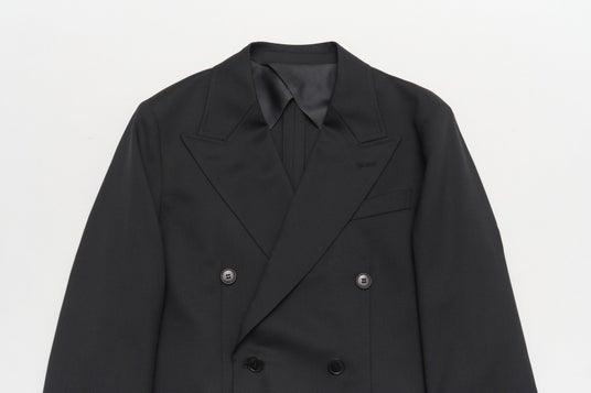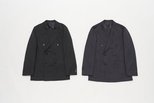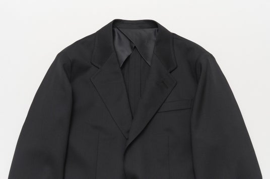 ピークドラペルが美しく収まるよう、生地の自重でへたらない様な芯地に。