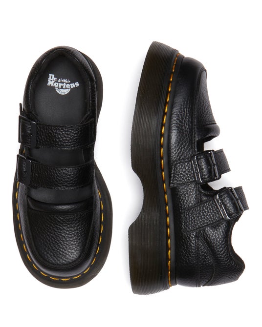 厚底のアンダーソールにはリーフ柄があしらわれ、シグネチャーであるグルーブパターンが施されており、ブランドのトレードマークであるバウンシング・ソール構造とともに、クッション性を高めるパッド入りのアンクルカラーを備え、ラバー素材のブランディングパッチがノスタルジックな印象を与えると共にアイコニックなイエローのウェルト・ステッチでドクターマーチンらしさを表現。BUZZコレクションは、90年代のブリティッシュのノスタルジックなテイストにモダンさと大胆さをミックスした新しいスタイルで、ドクターマーチンらしい、タフでキュートな女性に向けて展開します。