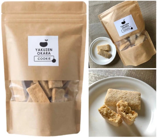 菊芋とココナッツオイル入りの薬膳おからクッキー。100%国産の新鮮な生おからを使用し、鹿児島県産の粗糖使用の自然な甘みで、サクサクの食感と満腹感が特徴です。菊芋に含まれるイヌリンが善玉菌のエサになり、低カロリーで栄養豊富なおからを使用しているのが魅力です。