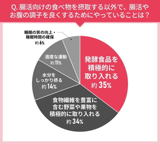 腸活向けの食べ物を取り入れている人は、それ以外でも腸活やお腹の調子を良くするためにしていることはあるのでしょうか?