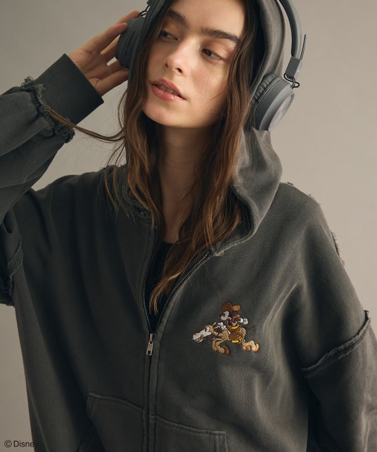 ピグメント加工を施したヴィンテージ仕様のスウェットアイテムは3型を展開。「ミッキーマウス」のサインをモチーフにしたロゴ入りのプルオーバーは、こなれ感のある一枚に。また、「ミッキーマウス」が乗馬をしている様子やカウボーイ姿を刺繍した、珍しいデザインのパーカーとパンツもご用意しました。