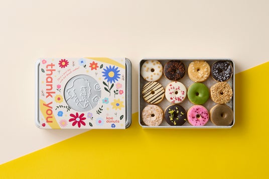 また、ラズベリーのハート形クッキーが入った特別仕様の限定商品「koe donuts ホワイトデークッキー缶」をkoe donuts online storeでは本日2月7日(木)12時から、店頭では2月15日(土)より発売いたします。さらに、ギフト人気が高い"thank you"メッセージのスリーブが付いた「koe donuts クッキー缶 - thank you」が、この度デザインを刷新して3月17日(月)に販売開始いたします。リボンをかけた花束のようなデザインのクッキー缶を、大切な方への贈り物としてぜひご利用ください。