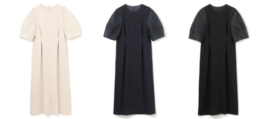 1枚で着映え、品よく華やかなシアースリーブワンピースは、ウエスト高めのタックがスタイルアップ効果を発揮し、膝下が長めのエレガントなスタイルに仕上げました。