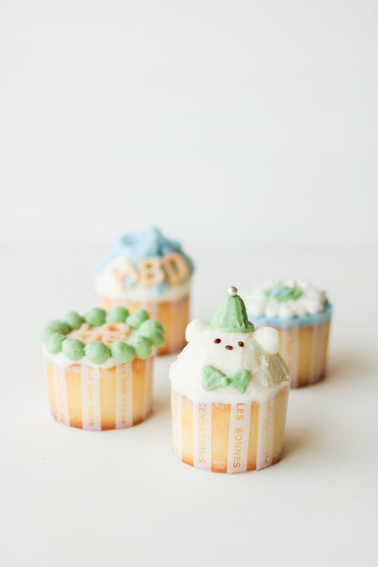 2色のデコレーション色素(緑・黒)がセットになった、5cmサイズのカップケーキが4つ作れます
