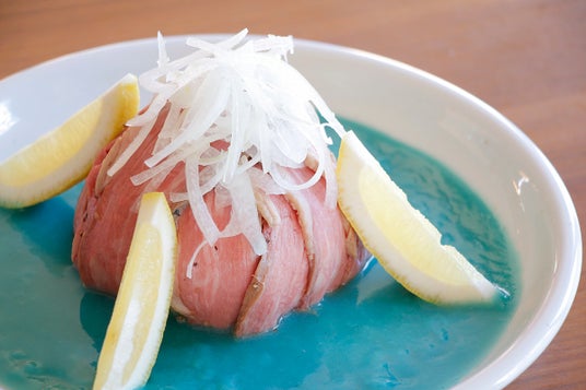 PICA初島「テラスレストランENAK(エナ)」では、レモンにちなんだフードやドリンクを多数楽しめます。初島丼合戦開催に合わせて、新メニューとして、青い海に浮かぶ初島とレモンをイメージした「初島爆弾ローストビーフカレー」や、輪切りのレモンがアクセントになっている「初島ブラックレモンラーメン」、かき混ぜるとオーロラの様なグラデーションドリンク「オーロラソーダ」が登場します。