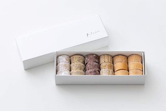 3.ころんとしたフォルムの存在感のあるクッキー。バニラ、紅茶、チョコ、ごま、ブールドネージュの5つの味をセットでお楽しみいただけます。