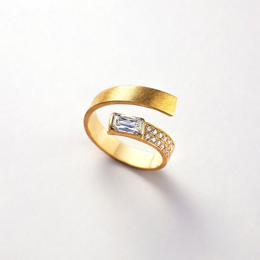 着け方や洋服との組合せによって見え方が変わる立体的なデザインは、自由に自分らしい着け方を楽しんでほしいというデザイナーの想いから生まれました。身に着けることで心も軽やかに動き出したくなるようなジュエリーです。アショカダイヤモンドの輝き、彫金技術による光沢感にもご注目ください。