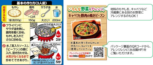 →材料の「もやし・お肉」に「つるつるビーフンと調味ソース」がよく絡むことで、野菜が苦手なお子さまもすすんで召し上がっていただけます。