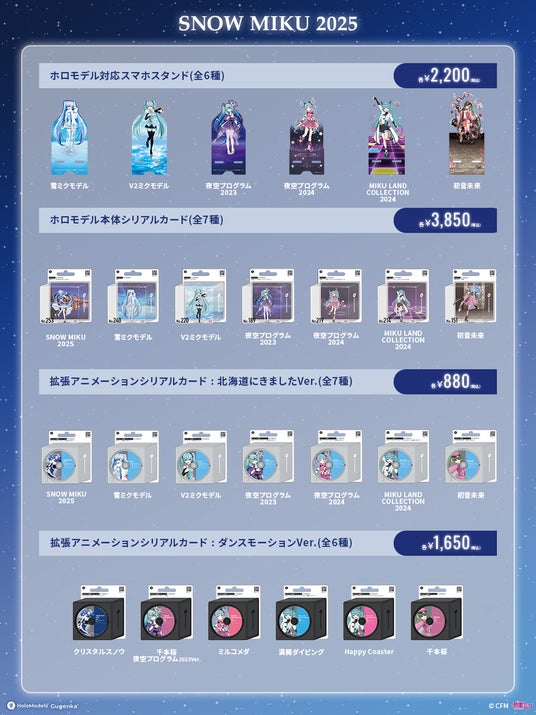 本イベントへの出展を記念して「雪ミク」「初音ミク- SNOW MIKU 2025」のデジタルグッズと、すでに販売されているホロモデル本体と組み合わせて楽しめる拡張アニメーションを新商品として販売いたします。