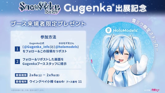 株式会社Gugenka(代表取締役CEO 三上昌史)は、2025年2月8日(土)より開催される『SNOW MIKU 2025』にて出展、デジタルフィギュアサービス「ホロモデル」のデジタルグッズを販売いたします。