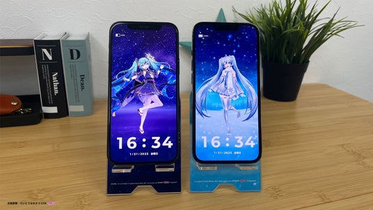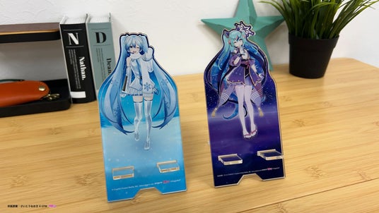 スマートフォンをかざすと、初音ミクのホロモデル本体が表示されるスマホスタンドです。