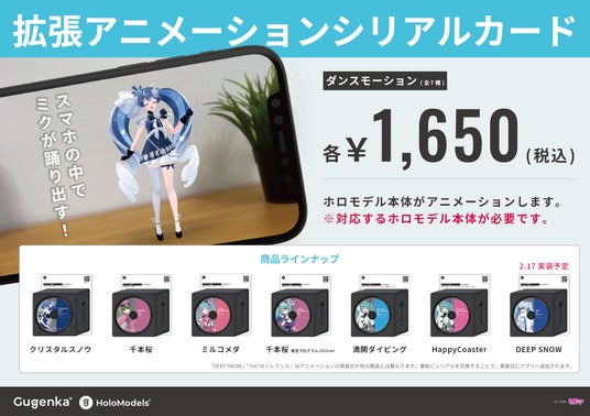 イベント会場のGugenkaブース内で、「ホロモデル対応スマホスタンド」「ホロモデル本体シリアルカード」「拡張アニメーションシリアルカード」を販売いたします。