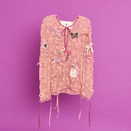 ピンクハウス ポッシュは、ピンクハウスのアーカイブやヴィンテージアイテムをゲストクリエイターとコラボし再構築するラインとして2023年に始動。これまで、アパレルメーカーのさえらが手掛ける「オーバーレース(overlace)」や、ニットアーティスト 蓮沼千紘によるハンドニットレーベル「アンエディ(an/eddy)」とタッグを組み、一点物のアイテムを展開してきました。