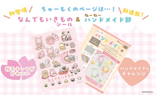 注目のキャラクター「なんでもいきもの」がシールに初登場~(ハート) 桜モチーフのいきものたちは春にぴったりっ!!さらに新連載スタート!「ねーねーハンドメイド部」では、ゆめかわなヘアアクセサリーの 作り方をご紹介(ハート) 自分だけのオリジナルヘアアクセを作ってね♪