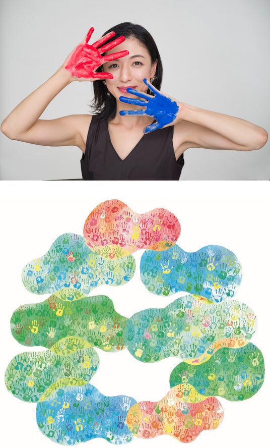 てのひらアーティストの板鼻 美幸さんが、参加者の皆さまと一緒に、イベントのキービジュアルを大きなキャンバスに描きます