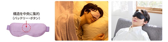 本製品は、「快眠にもっと手軽な温熱アイマスクを」という声に応えて開発しました。こだわりは、操作ボタン位置とシルク素材。仰向き寝、横向き寝、うつむき寝と人それぞれですが、バッテリーや操作部が入眠の邪魔になっては快適にくつろげるとはいえません。さらに気持ちよさを高める工夫としてカバー素材にシルクを採用しました。