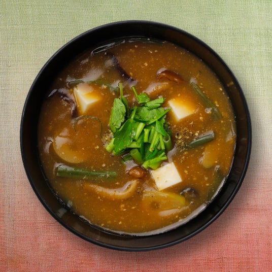 [赤味噌仕立て]山菜・なめこ・豆腐・せり・粉山椒