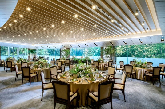 明治神宮内苑にあるフォレストテラス明治神宮には、森のバンケット「欅(けやき)」や「東京都選定歴史的建造物」に選ばれた純日本家屋の「桃林荘(とうりんそう)」など、大小さまざまな披露宴会場を有しています。和装も洋装もどちらも映える、おふたりのテーマに合わせた結婚式が明治神宮の境内で叶います。