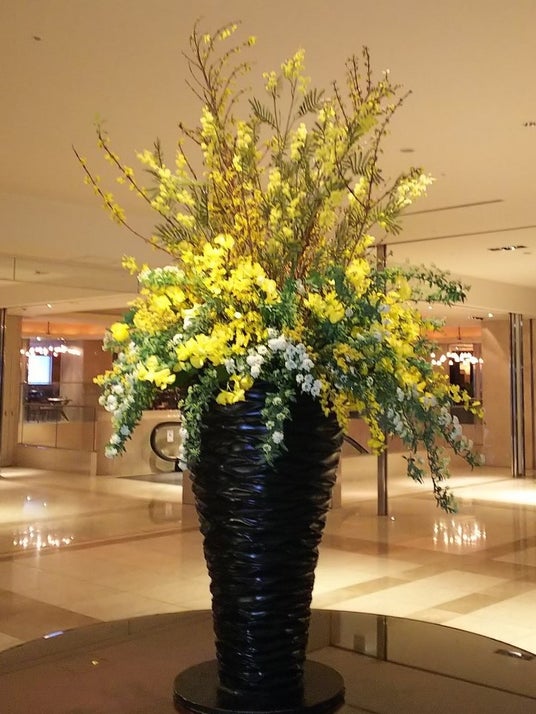 「国際女性デー | HAPPY WOMAN FESTA 2025」開催期間中、ハッピーイエローのフラワーなどを飾り、明るく彩られたロビーで皆さまをお迎えします。