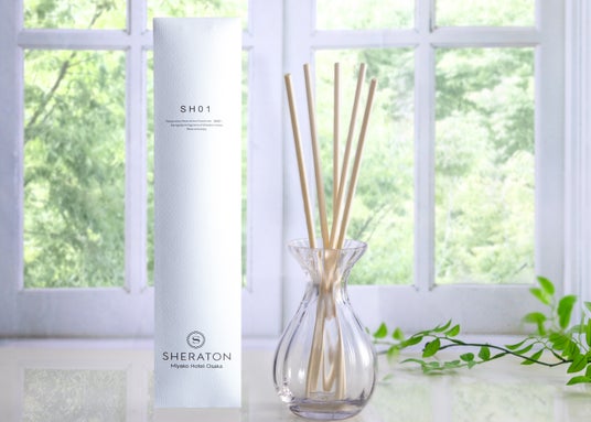 シェラトンホテルのロビーに漂う香り「SH01」をご自宅でも楽しめる、ディフューザースティック付きプラン。お部屋は明るいオレンジカラーを随所にあしらった、プレミアムフロアのデラックスツインをご用意します。