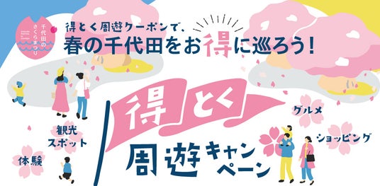 桜の季節、千代田区内では毎年様々なイベントの開催や春らしいメニューを提供する飲食店などで盛り上がります。今年は周辺地域で開催しているイベントなどを総称して「千代田のさくらまつり」を開催。お食事やショッピングのサービス・割引特典で、千代田区をお得に周遊できる「得とく周遊キャンペーン」も合わせて実施し、千鳥ヶ淵の混雑緩和にも繋げていきます。千鳥ヶ淵から少し足を延ばして、千代田区の春の魅力をぜひお楽しみください。