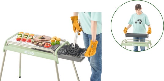 本アイテムは、組立てやお掃除が簡単で、ストレスフリーにBBQを楽しめるLOGOS定番のスタンド型グリルです。本体の高さと火力が2段階に調節でき、安全性や環境にも配慮した多機能設計で、BBQをより美味しくより安全に楽しめます。カラーは、グリルでは珍しい色味のレトログリーンを採用し、サイズはMサイズとLサイズの2種類をラインアップします。