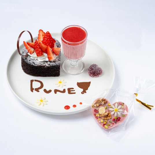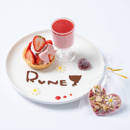 「RUNEプレート」は、鮮やかな彩りと繊細なデコレーションが魅力のプレートスイーツ。イチゴタルトまたはチョコブラウニーの2種類から選ぶことができ、見た目の華やかさだけでなく、厳選した食材を使用した本格的な味わいも存分に堪能できます。
