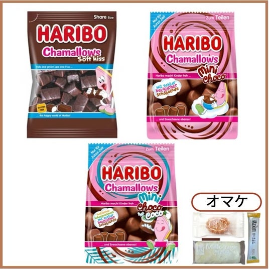 【2位】ハリボー チョコマシュマロ 3種(ショップ名:韓国イケメン)ハリボーのチョコマシュマロ、一口サイズで食べやすいミニサイズ、ココナッツ味の3種類から選べる!