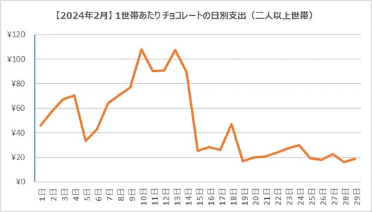総務省統計局「家計調査」二人以上世帯 品目分類による日別支出(2024年2月)をもとにクラダシにて作成