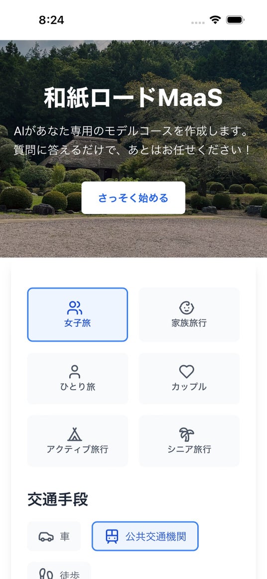 MaaS(マース)とは、スマートフォンなどを使い、電車やバスなど複数の交通手段をまとめて検索・予約・決済できる仕組みです。移動手段をスムーズに組み合わせ、快適な移動をサポートします。今回リリースした「和紙ロードMaaS」は、弊社が運行する路線バスを活用し、AIがユーザーに最適な観光コースを提案するダウンロード不要のブラウザベースのMaaSサービスです。