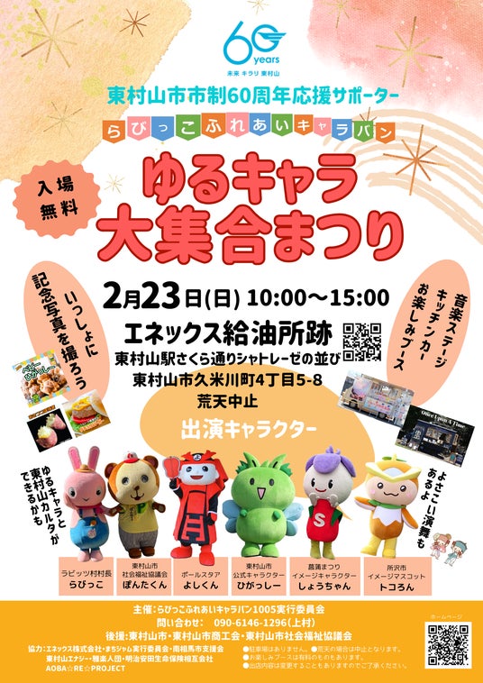 東村山市市制施行60周年記念事業イベント開催!「ゆるキャラ大集合まつり」