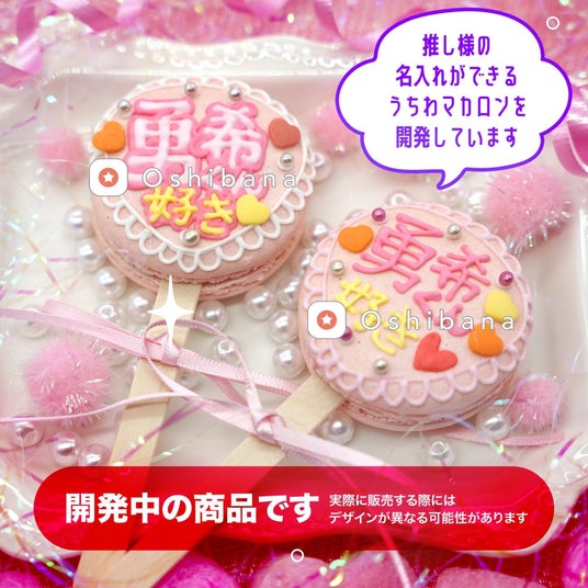推しの名入れができる激カワの「応援うちわマカロン」。生産数量を絞って発売予定です。