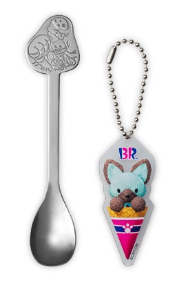ゲーム内の人気キャラクターのアイルーとアイスクリームをデザインしたアイルーオリジナルスプーンとPlayStation(R)5『モンスターハンターワイルズ』で使用できる【サーティワン】スペシャルチャームセットのプロダクトコード、そのスペシャルチャームをイメージした「アイルー・チョコレートミント」アクリルキーホルダーがついてくる!
