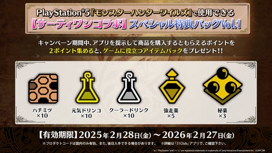 集めたスタンプ数に応じて、待ち受け画像やPS5(R)『モンスターハンターワイルズ』のゲーム内で使用できるアイテムパック、サーティワンで使える50円OFFクーポンをプレゼント!