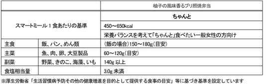 今回発売の弁当は以下のスマートミール基準を満たしています。