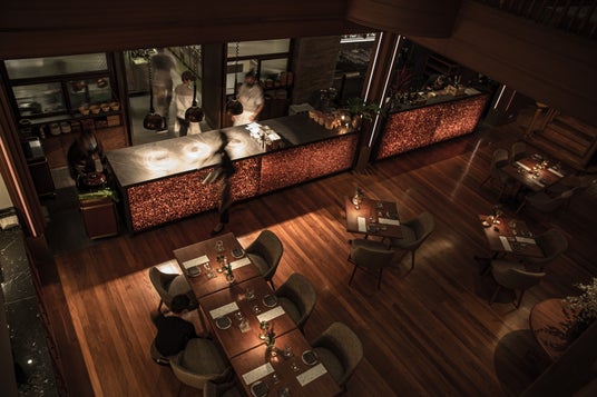 2020 年にオープンした「バーン・テパ」は、オープンキッチンのダイニングルーム、シェフズテーブル、オーガニック・ガーデンが、調和を保ちつつ融合したスペースとなっています。「ハート・オブ・タイランド:ナム・プリック」(一口毎にタイ国内の異なる地域を表現)、「ドンダン・ヌードル」、「アナトミー・オブ・ア・リバープラウン」と名付けられた料理から構成される7 品のテイスティングメニューでは、ゲストをタイ各地への旅へと誘います。かつてタム氏の祖母の家であった三世代家庭の邸宅は、タイの伝統料理の素晴らしさを賞賛する都会風の空間へと生まれ変わりましたが、オリジナルの木製フローリングや高い天井、元来の素材を用いた壁など、魅力的な特徴はそのまま残されています。