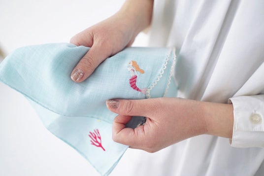 「悲しかったり楽しかったり いろんな涙とともにあるこの世界に いち枚のおくりものを」のタグラインをもとに、アーティスト我喜屋 位瑳務さんとタッグを組んだコラボレーションハンカチーフ。