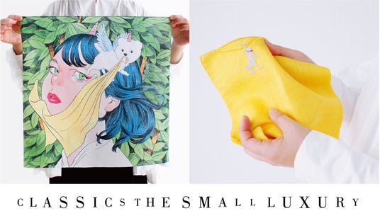 今回初出展となるポップアップショップでは、「手のひらにアート」をテーマに、クラシクス・ザ・スモールラグジュアリが、これまで様々なコラボレーションをしてきた中から、アーティストがハンカチのために描きおろした一枚や、日本の伝統美と熟練の職人の技術が融合した和柄など、思わず額縁に入れて飾りたくなるような、一枚絵としても楽しめるデザインのハンカチを豊富に展開します。この他、発売以来人気の、様々な動物がハンカチの縁を引っ張る刺繍がユニークな「HIKKOMI 」シリーズなどを販売します。ハンカチーフを通じて、デザインやクリエイティブなアートをお楽しみください。