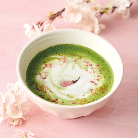 上品な香りとほどよい渋みの抹茶に、優しい甘さのさくらミルクを合わせました。