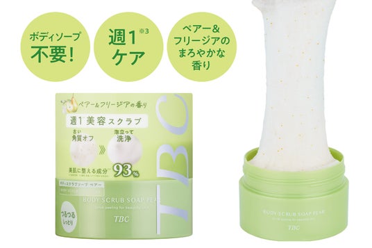 TBCグループ株式会社(本社:東京都新宿区 代表取締役:長田 佳敏)は、のび~るふわとろ体感で人気の「TBC ボディスクラブソープ」より、ペアー&フリージアの香りを 2025年3月1日(土)からロフト(※1)、TBCオンラインショップにて先行発売いたします。2025年3月17日(月)からは順次、他バラエティショップ等にて発売いたします。「TBC ボディスクラブソープ」は、美肌に整える成分(※2)93%のこだわりのボディスクラブで、販売当初より大変ご好評いただいております。もっちりとしたやわらかな洗浄料でやさしく角質オフができるので、ひじ・かかと・ヒップ等のパーツケアにもおすすめです。新発売の「TBCボディスクラブソープ ペアー」は、リラックスタイムにピッタリな、とろける洋梨と華やかなフリージアのまろやかで甘美な香りです。