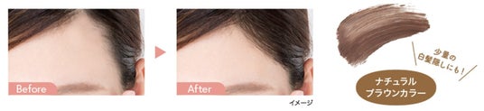 前髪の三角隙間など生え際の部分の余白にうぶ毛を描きたすことで小顔効果を演出できます。また、どんな髪色にもなじむナチュラルブラウンカラーで黒髪でもハイトーン髪でも、きれいに仕上がります。