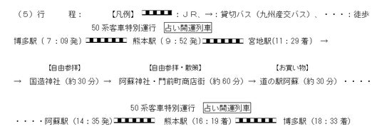 (6)ご旅行代金:博多駅発着21,800円、熊本駅発着19,800円(お一人様あたり/大人こども同額)